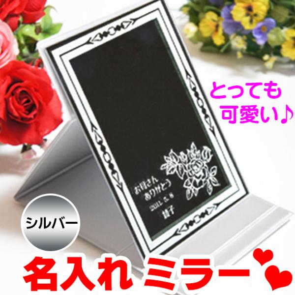 名入れ 卓上 ミラー シルバー 鏡 折りたたみ おしゃれ 誕生日